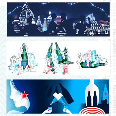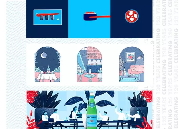 As part of the 120th Anniversary celebrations, S.Pellegrino entered into a unique collaboration with the Istituto Europeo di Design (IED). A group of talented IED students was asked to create a series of artworks illustrating the brand's 120-year history.